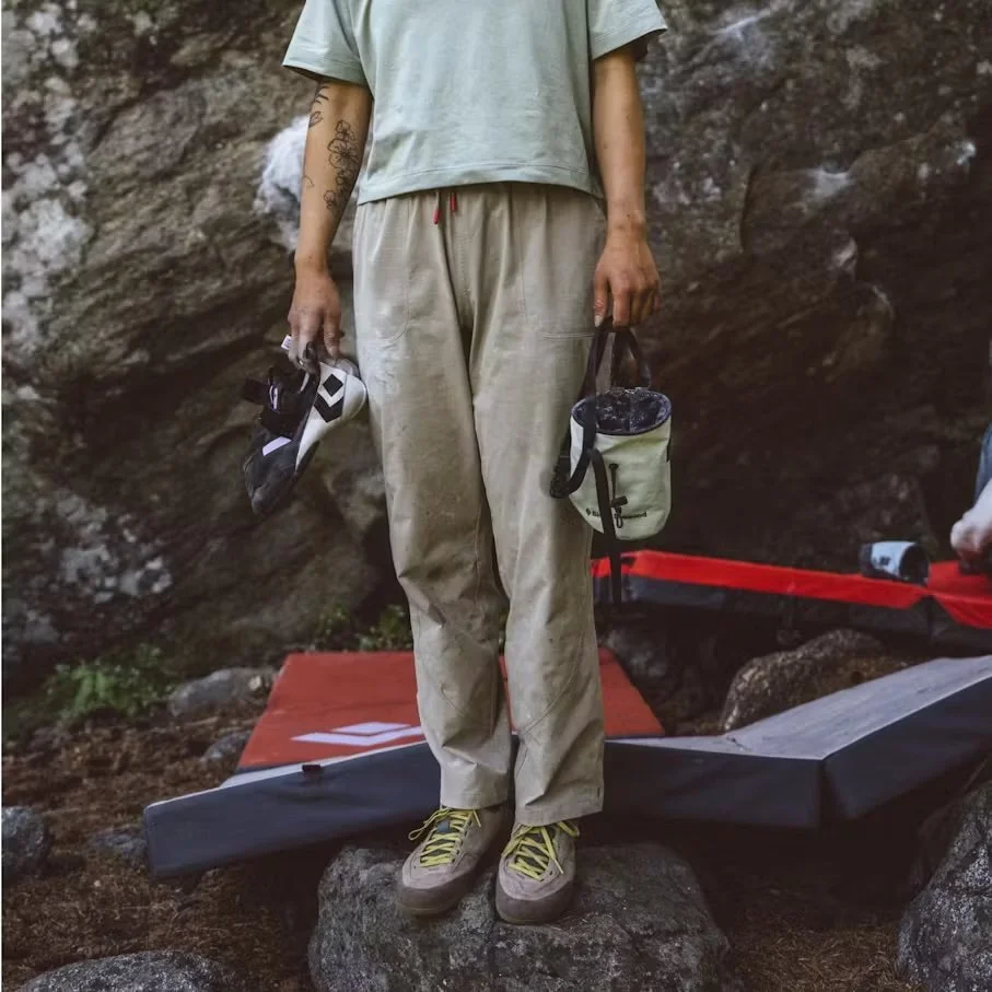 Trendier ankle length straight-leg silhouette that is a departure from Black Diamond’s signature jogger fit while still providing a tidy lower leg that can be cuffed if needed